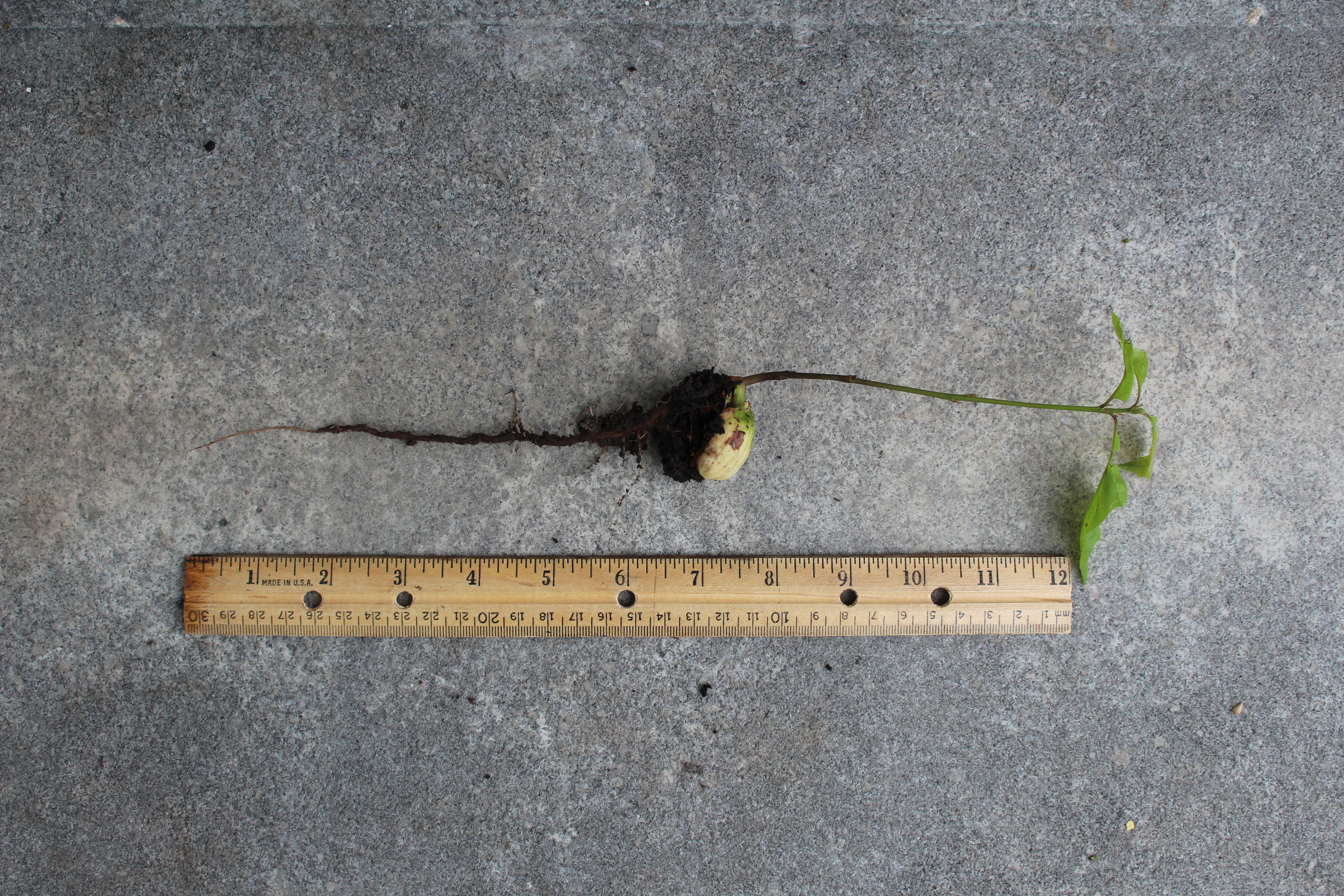 The acorn germinated this winter, under a Shumard oak (Quercus shumardii), which was featured on the blog this past September for our Acorn Watch 2022 (found here). The hard outer shell of the acorn resembles a Shumard oak acorn. Furthermore, there are two additional Shumards nearby, and the other oak species in the immediate vicinity are either white oaks or their acorns do not resemble the acorn shell found here. So, leaving aside, at least for now, the difficulty of oak hybridization, it seems safe to say that this is a new Shumard oak in the arboretum collection.